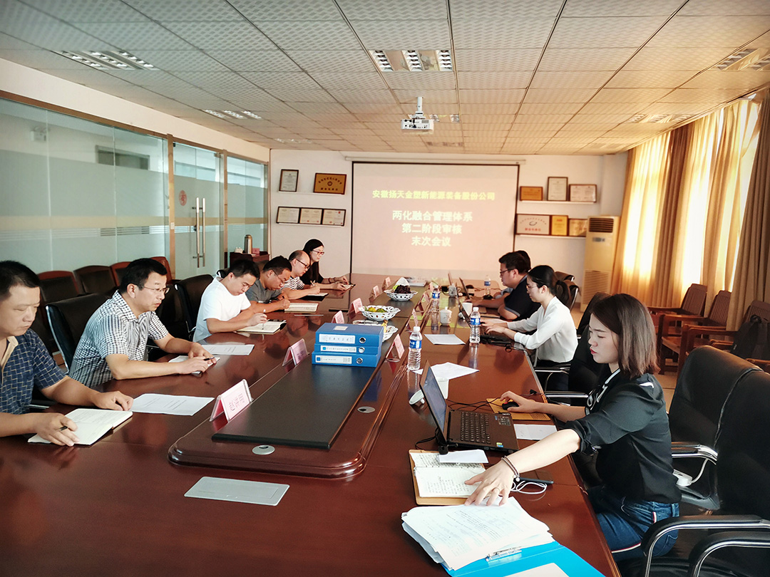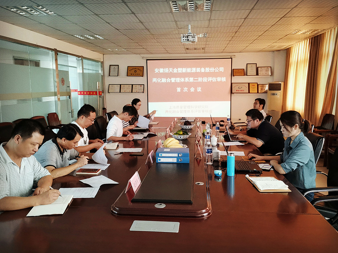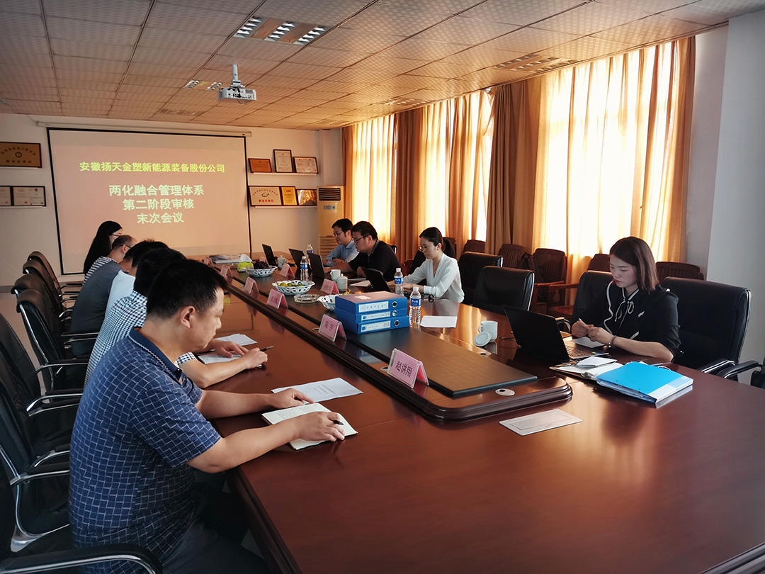 公司總經理邵天表示兩化融合是揚天金塑轉型發展和生存發展的需要,兩化融合對揚天的集團化管控,市場化運作,專業化和精細化管理非常重要,要求與會各部門負責人要高度重視,積極配合好專家的評估審核,要虛心學習,做好記錄,確保評估審核工作順利進行,確保揚天金塑的兩化融合管理體系評估審核順利通過。